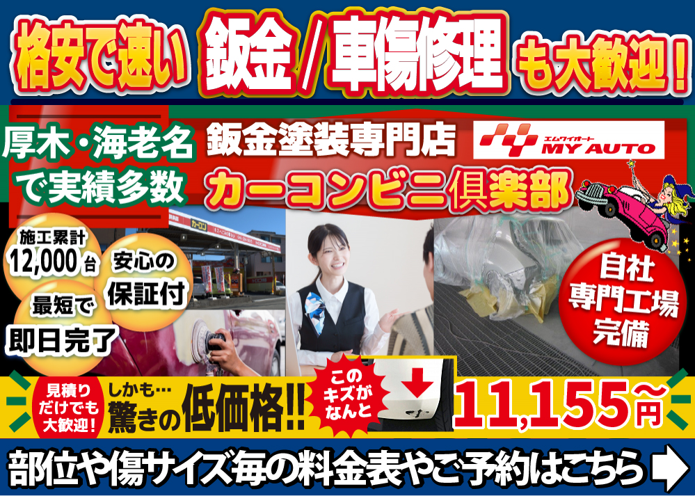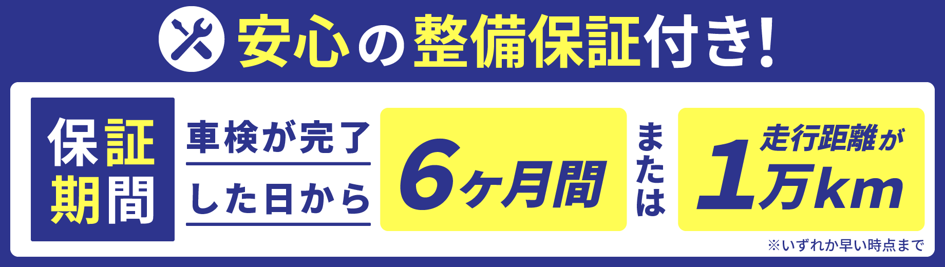 海老名・厚木・座間・綾瀬・寒川・藤沢・茅ヶ崎エリアのお客様が安心してご利用いただけるように、【車検後6か月・または走行距離が1万kmの保証】もお付けしております。