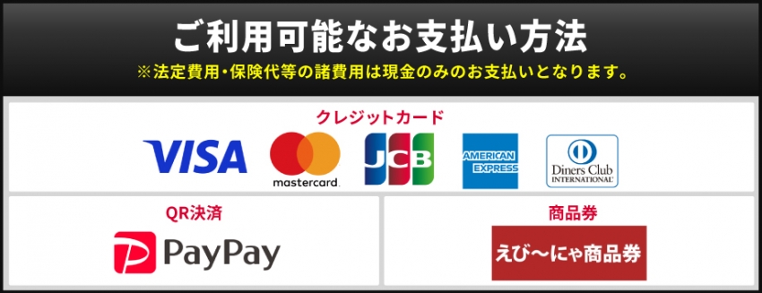 ※法定費用・保険代等の諸費用は現金のみのお支払いとなります。